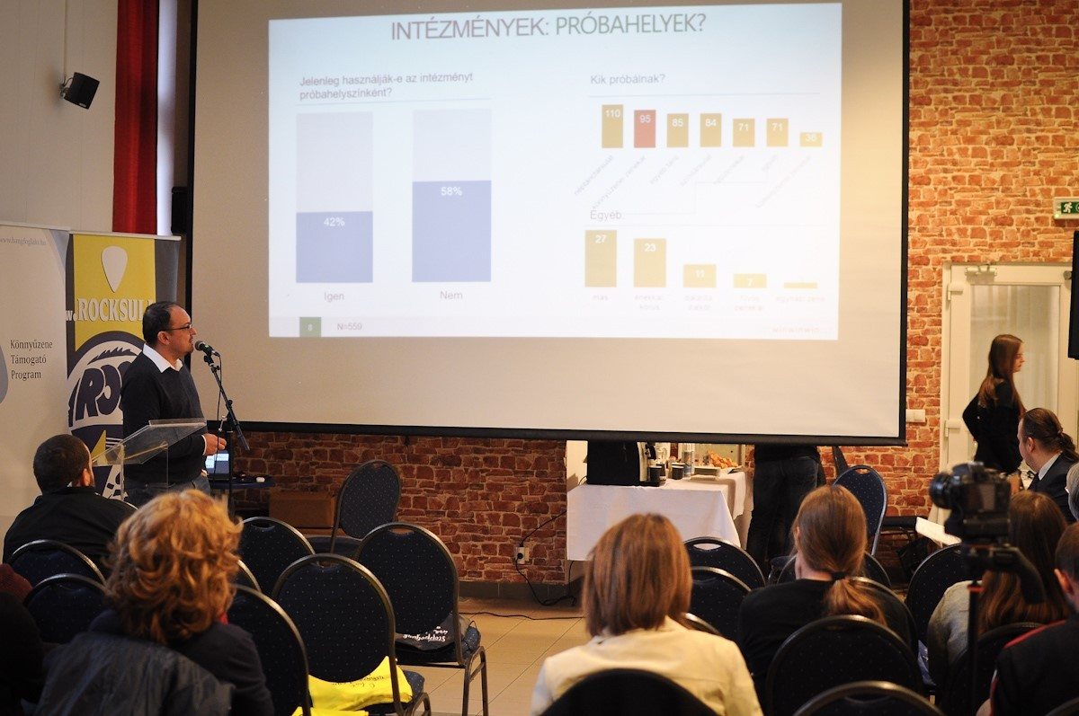 A konferencia első blokkjában jól működő képzőhelyek esettanulmányszerű bemutatásaira került sor, így elsőként a házigazdák, Balogh Péter Miklós, a Rocksuli vezetője és az 1980-as évek végén külföldi tanulmányútjai után az intézményt megalapító Vincze Béla beszéltek a négy városban is működő, közel 800 diáknak pop-rock zenét tanító hálózatról. Pap Tibor egy vadonatúj képzőhelyről tartott előadást, a tatai Peron Tehetségközpontot képviselve, majd Ősze Gergely Ausztriai könnyűzenei képzés formuláiról adott részletes ízelítőt, miután ő maga is Bécsben szerzett diplomát, és jelenleg is több ausztriai intézményben oktat dobot.