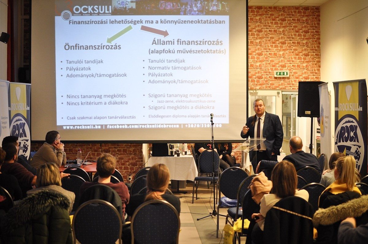 A hazai könnyűzenei képzés volt a témája az NKA Hangfoglaló Program és az idén 30 éves debreceni Rocksuli Könnyű/Zenét/Tanulni című konferenciájának november végén. Az érdeklődők tíz témába vágó előadást hallgathattak meg a debreceni Ifjúsági Házban, ahol egyébként a társszervező Rocksuli 2011 óta építgeti számos oktatóteremmel felszerelt, közel négyszáz tanulót oktató bázisát.