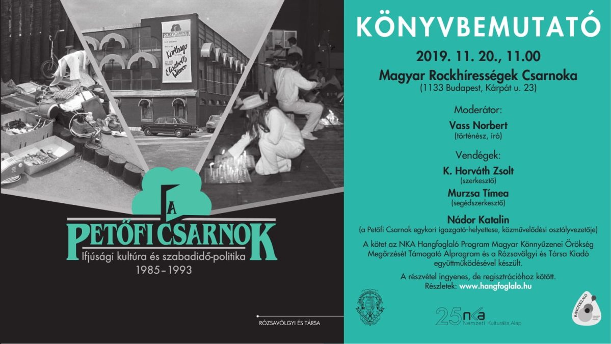 A kötetbemutató helyszíne a Magyar Rockhírességek Csarnoka (1133 Budapest, Kárpát u. 23) lesz, időpontja 2019. 11. 20. (szerda), 11:00 óra.