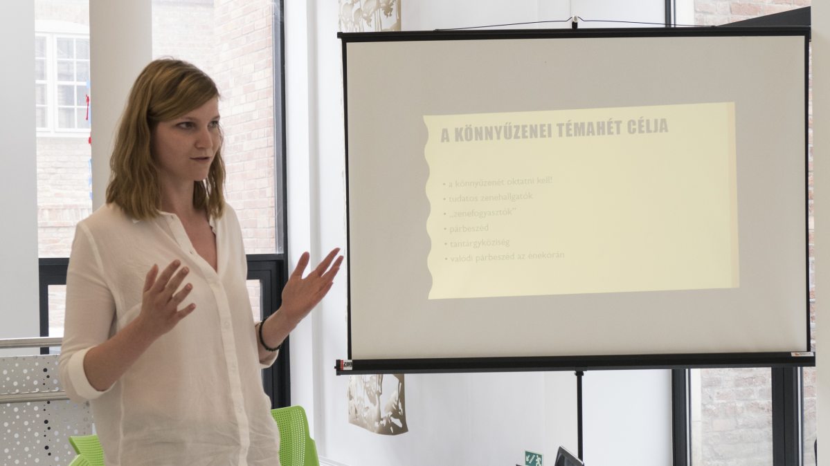 A diszkussziót és a kávészünetet követően az NKA Hangfoglaló Programjának két munkatársa tartott előadását. Balga Nóra, a HP Magyar Könnyűzenei Oktatást Támogató Alprogramjának koordinátora a 2018. október 1-5-ig tervezett Könnyűzenei Témahét programjáról, illetve a Poptanítás Munkacsoport munkájáról számolt be, majd pedig Murzsa Tímea, a Legyen a könnyűzene is mindenkié című kötet szerkesztője mutatta be az azonos című konferencia előadásaiból készült kiadványt.